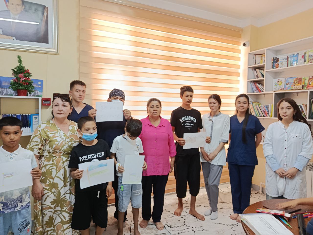 Ushbu tadbirda kasalxonada davolanayotgan bolalar markaz kutubxonasida yig‘ilib, faol ishtirok etdilar. Tadbir davomida bolalar tomonidan davlat bayrog‘i rasmlari chizildi, Vatan, tinchlik va istiqlol mavzusidagi she’rlar ijro etildi hamda ularga turli badiiy va ertak kitoblar tuhfa qilindi.