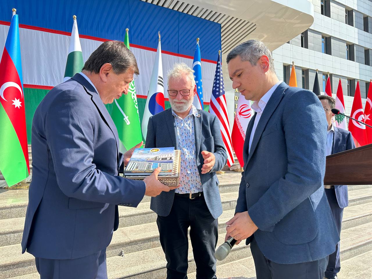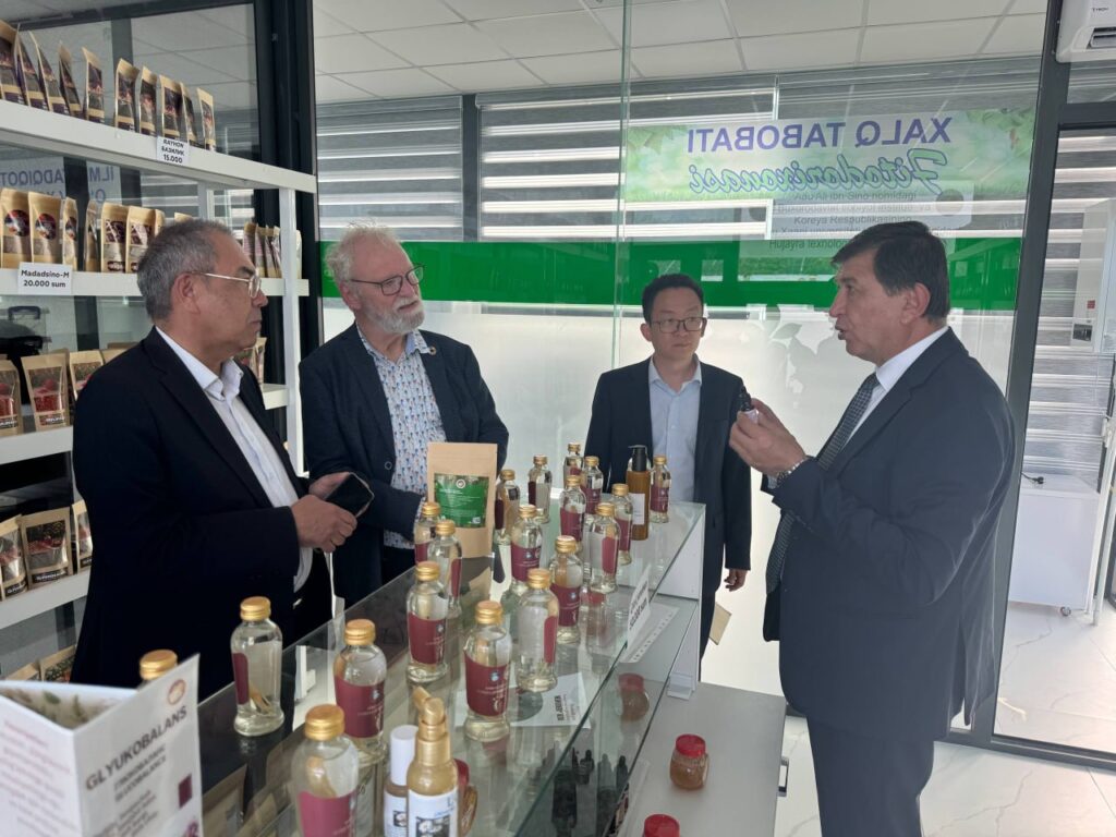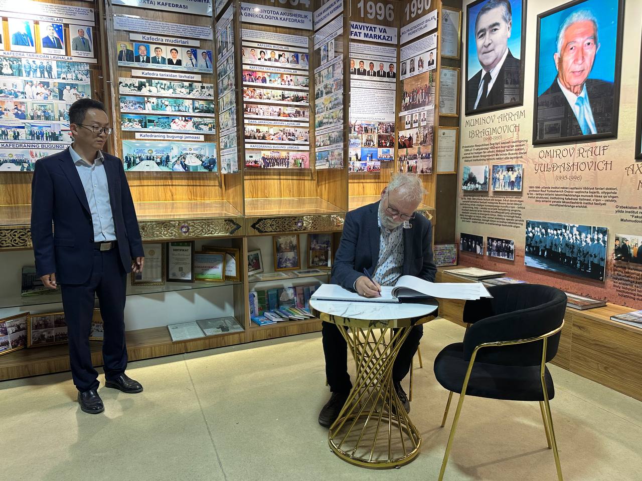 رافقه في الزيارة البروفيسور باوغال من جامعة تشينغداو، وكان في استقباله مدير المعهد البروفيسور شوخرات تيشاييف ونائب المدير لازيز نيازوف. كما اطلع الوفد على المختبرات والمنشآت العلمية الحديثة في المعهد.