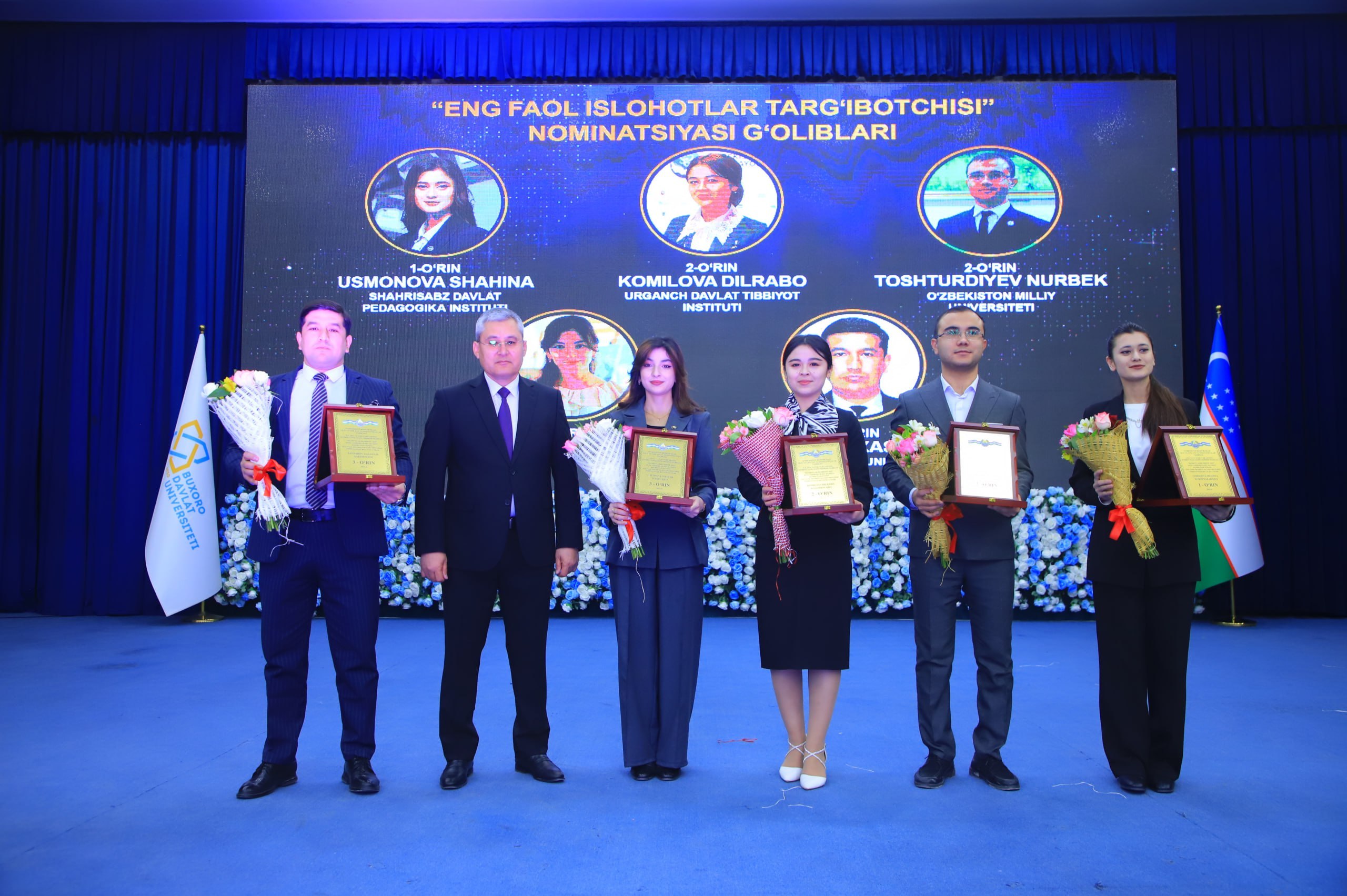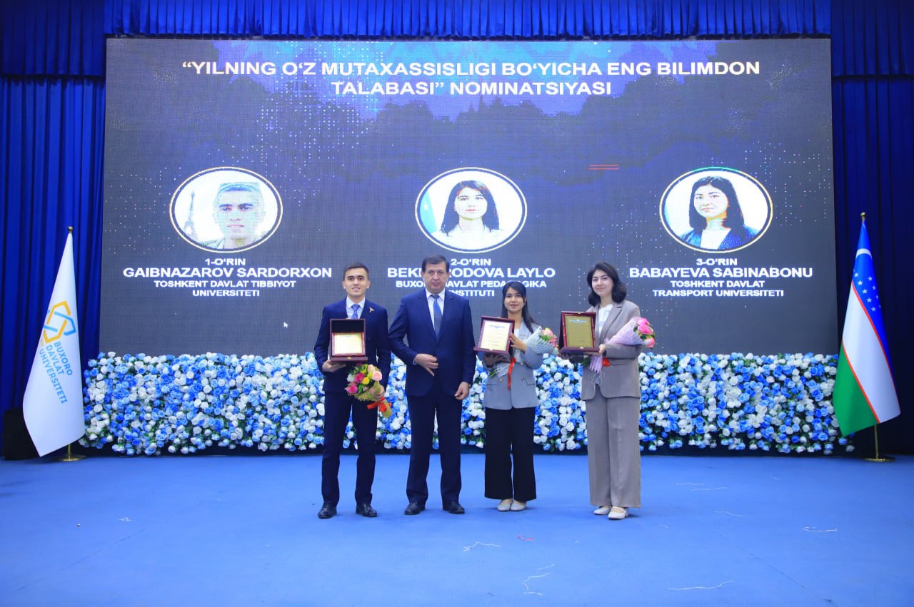Buxoro davlat universitetida respublika miqyosida o‘tkazilgan ko‘rik-tanlovlar g‘oliblarini taqdirlash marosimi tashkil etildi.