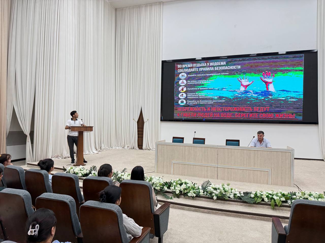 👥 Yig‘ilishda yoz mavsumida cho‘milish qoidalariga qat’iy amal qilish, taqiqlangan joylarda cho‘milmaslik, bolalarni suv havzalari yaqinida nazoratsiz qoldirmaslik zarurligi alohida ta’kidlandi.