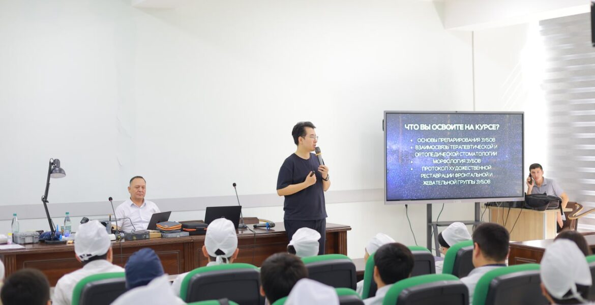 Institutning Simulyatsion markazida S.D. Asfandiyorov nomidagi Qozog‘iston Milliy Tibbiyot Universiteti ortopedik stomatologiya kafedrasi xodimi, vrach-stomatolog Jamashev Jenis Jaksılıkovich tomonidan “Frontal tishlarning badiiy restavratsiyasi” mavzusida ma’ruza va amaliy mashg‘ulot o‘tkazildi.