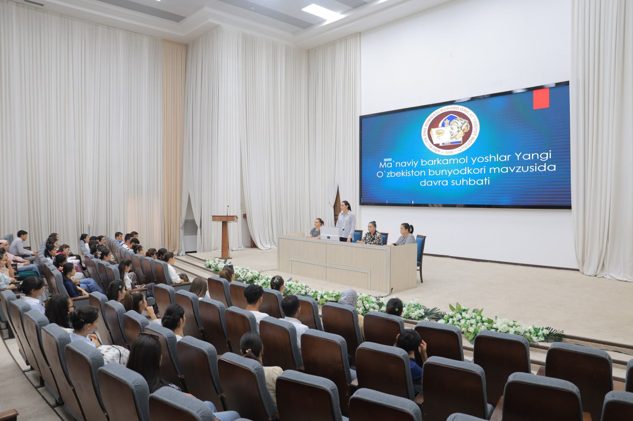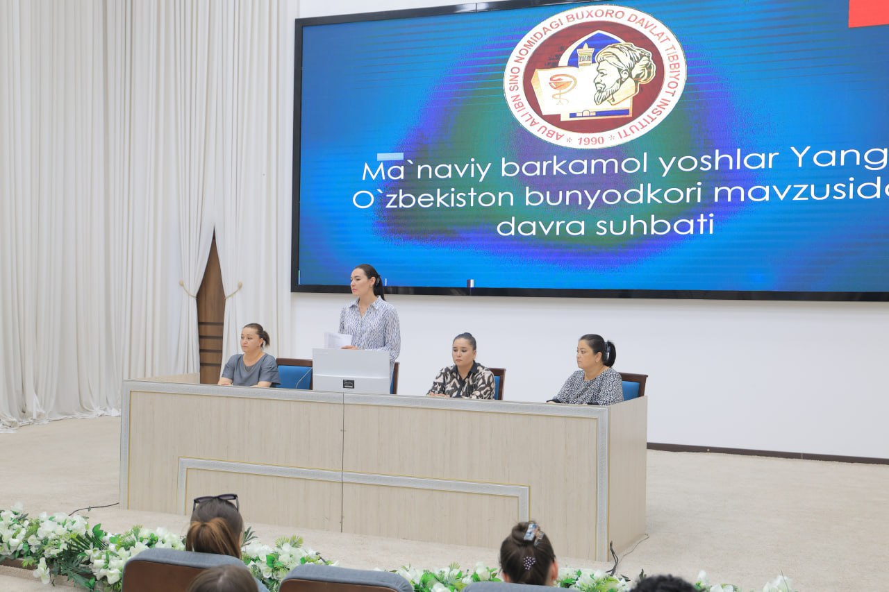 🏛Joriy yilning 5-iyul kuni Abu Ali ibn Sino nomidagi Buxoro davlat tibbiyot instituti faollar zalida Biotibbiyot fakulteti dekan o’rinbosari Olimova Nasiba Ismatilloyevna, tyutorlar va talabalar ishtirokida “Ma’naviy barkamol yoshlar – Yangi O’zbekiston bunyodkori” mavzusida davra suhbati tashkil etildi.