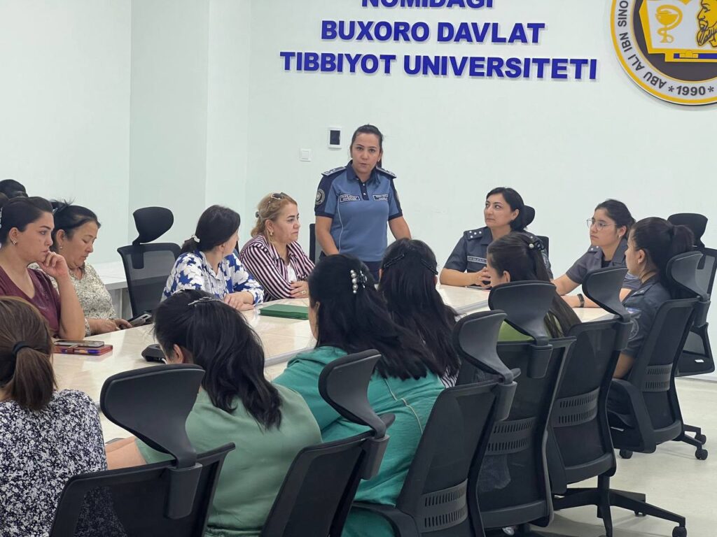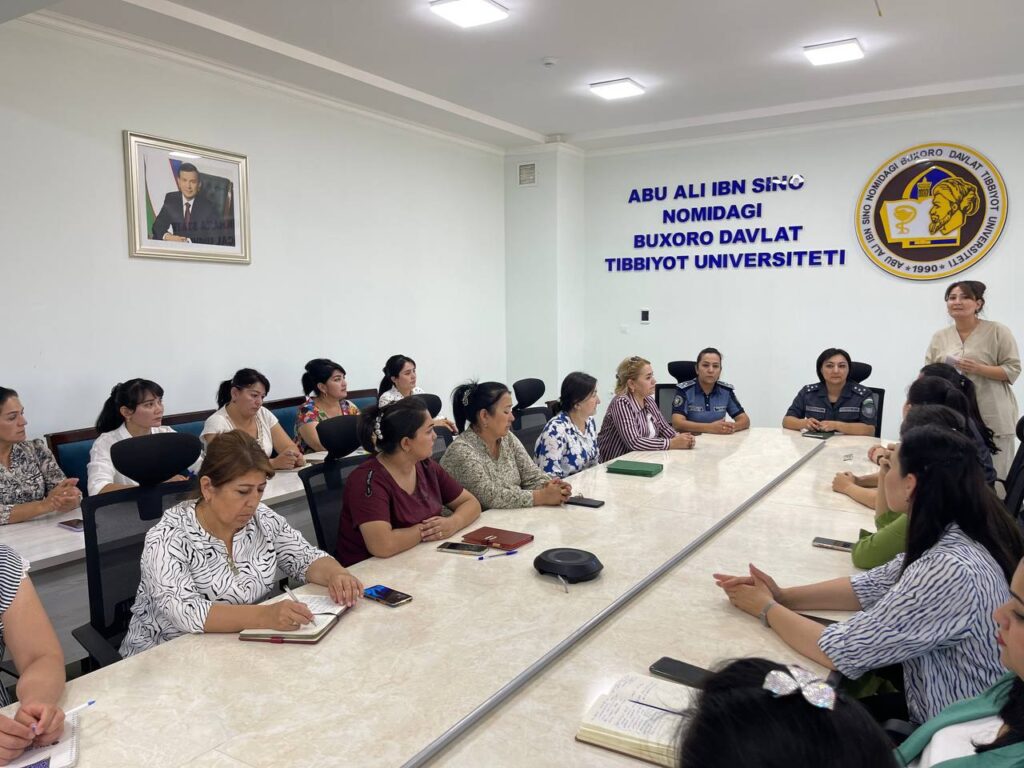 📌Abu Ali ibn Sino nomidagi Buxoro davlat tibbiyot institutida Xotin-qizlar o’rtasida jinoyatchilik va huquqbuzarliklarni oldini olish, Xotin-qizlarni tazyiq va zuravonlikdan himoya qilish maqsadida Buxoro viloyat IIB ma’sul xodimlari hamda institut profilaktika inspektori G.Odilova ishtirokida oliygoh pedagoglari bilan profilaktik tadbir o’tkazildi.