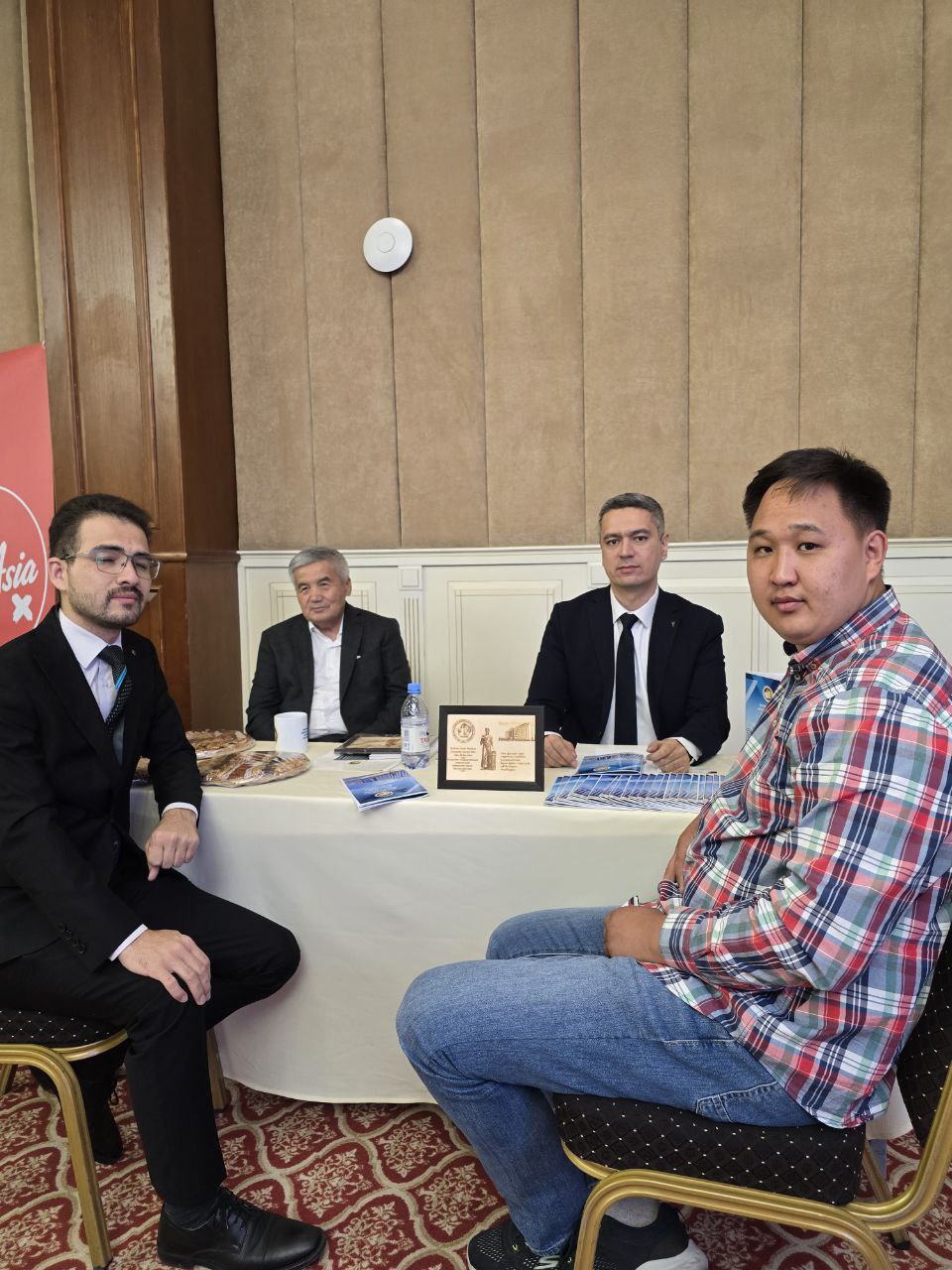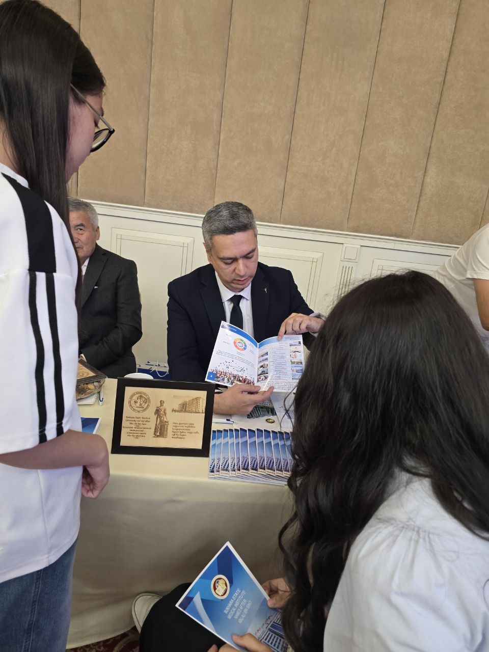 During the fair, Mr. Niyozov is engaging with international guests and education organization representatives, providing detailed information about Bukhara State Medical Institute’s educational opportunities, international programs, student facilities, and scientific potential.