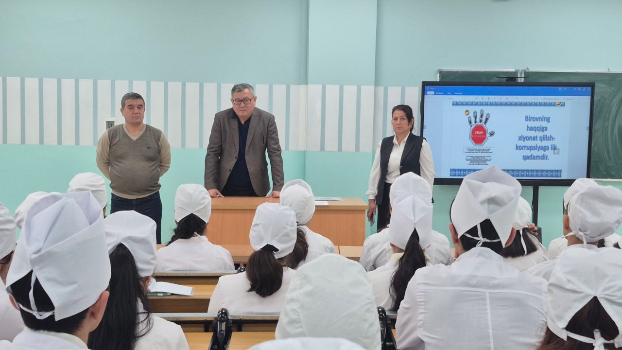 Halollik haftaligi doirasida Buxoro davlat tibbiyot institutida “Halollik soati” ma’rifiy darslari o‘tkazildi. Unda tibbiyot sohasida halollik, mas’uliyat va shafoflik masalalariga alohida e’tibor qaratildi.