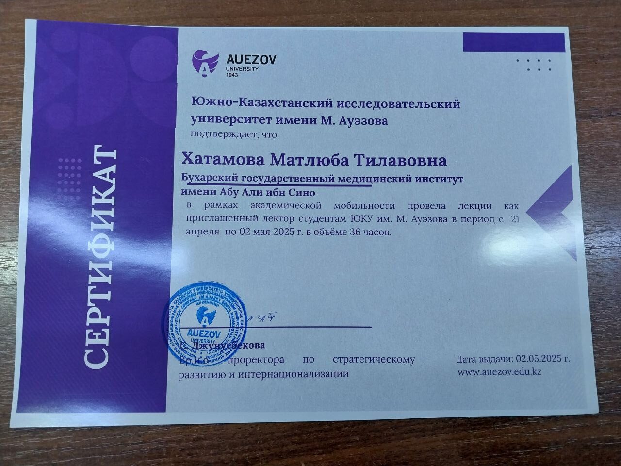 Нурханова Н.О. «Современные аспекты прогнозирования и оптимизации тактики ведение женщин с гиперплазией эндометрия в перименопаузальном периоде».