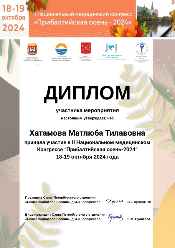 - Преэклампсия муаммосига замонавий қарашлар//тиббиётда янги кун Ахмедов Ф.К. Негматуллаева М.Н. Курбанова З.Ш. тиббиётда янги кун. 1(21)- 2018.