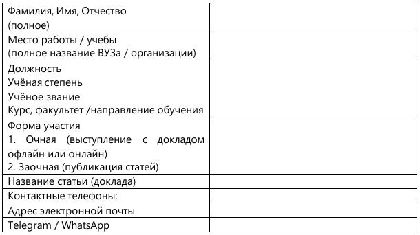 Регистрационная форма участника междуународной