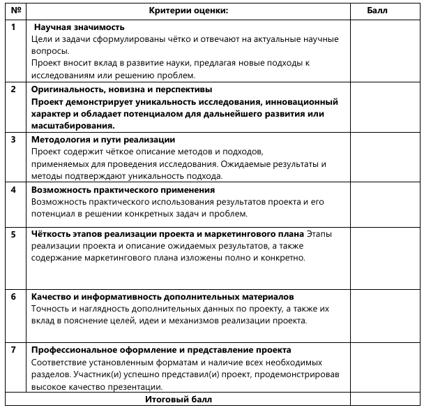 участвовать могут только проекты с чётко запланированными ожидаемыми результатами, не представленные на других конкурсах, ранее не получавшие финансирования и имеющие MVP/прототип;