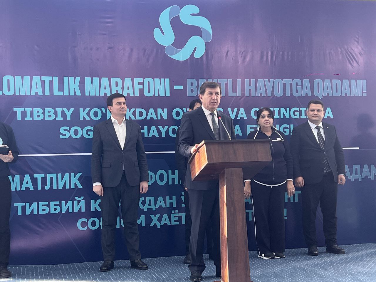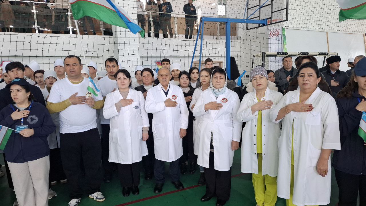 ➡️ В настоящее время проходит торжественная церемония открытия мероприятия с участием ректора института Шухрата Тешаева, начальника областного управления здравоохранения Эльёра Олтиева и других официальных лиц.
