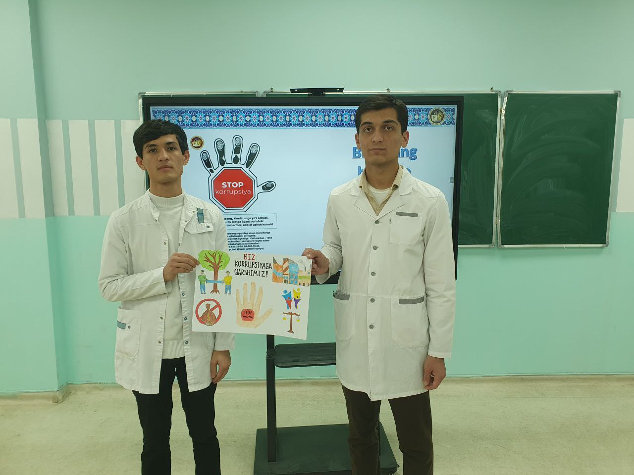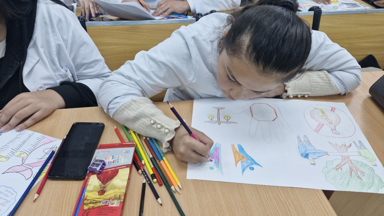 💳 布哈拉国立医学院医学院一年级和二年级学生积极参加了学院组织的以**“腐败是发展的敌人”**为主题的绘画比赛。